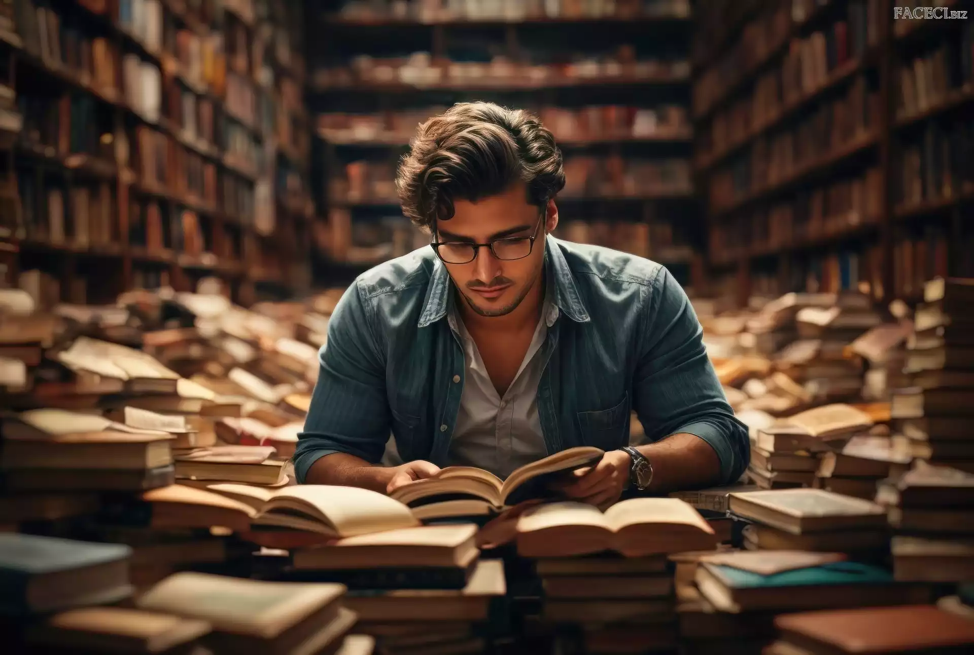 Biblioteka, Książki, 2D, Mężczyzna, Czytający - faceci.biz